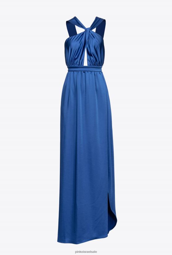 שמלות ארוכות | Pinkoכְּחוֹל שמלת סאטן ארוכה עם שסע 4J84TD49