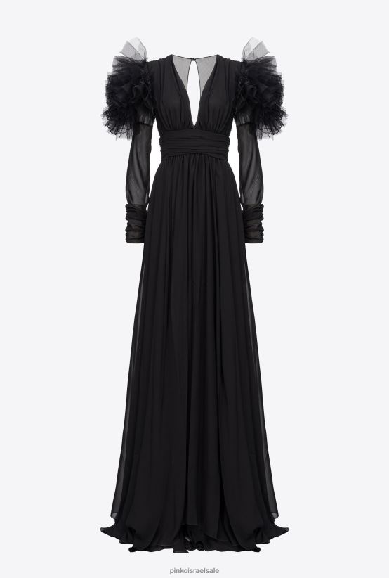 שמלות ארוכות | Pinkoלימוזינה שחורה שמלת שיפון וטול ארוכה 4J84TD187