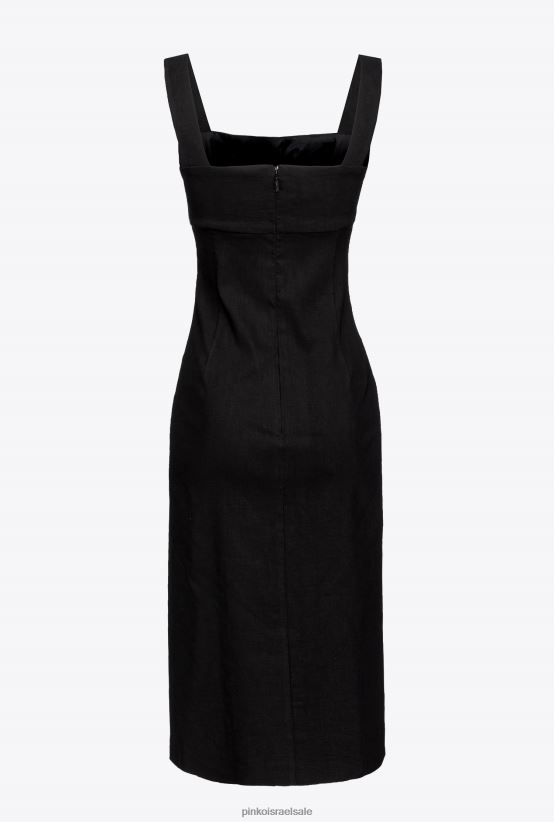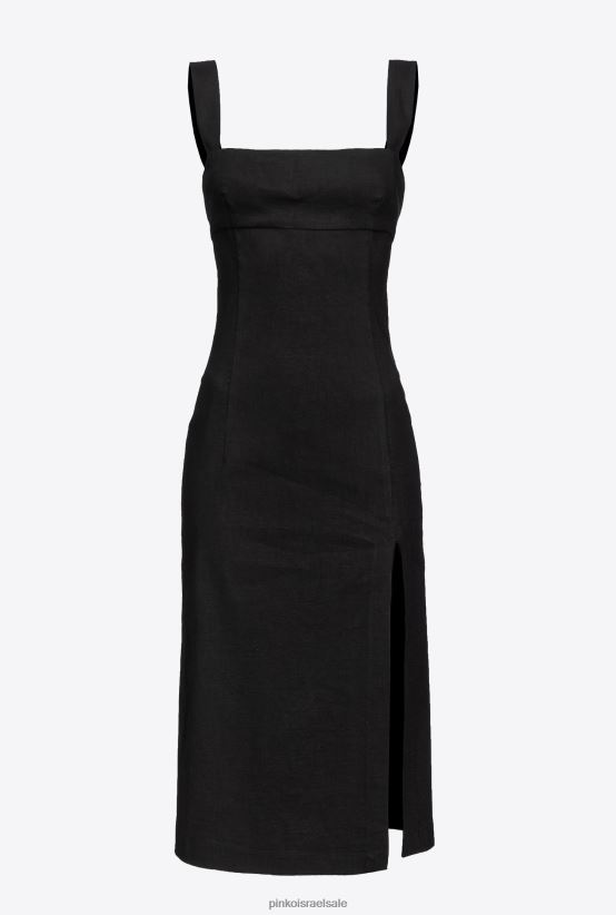 שמלות באורך בינוני | Pinkoלימוזינה שחורה שמלת פשתן מתיחה באורך העגל 4J84TD123