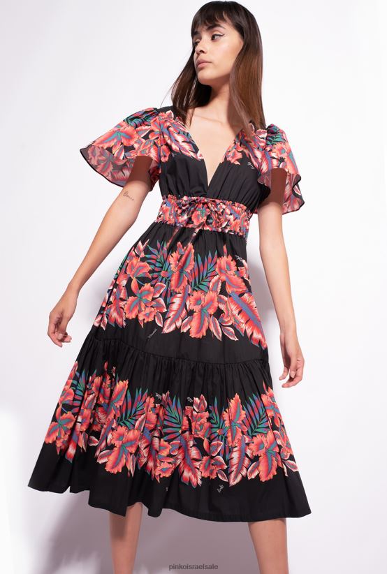 שמלות באורך בינוני | Pinkoרַב. שחור/אדום שמלת פופלין בהדפס טרופי 4J84TD106