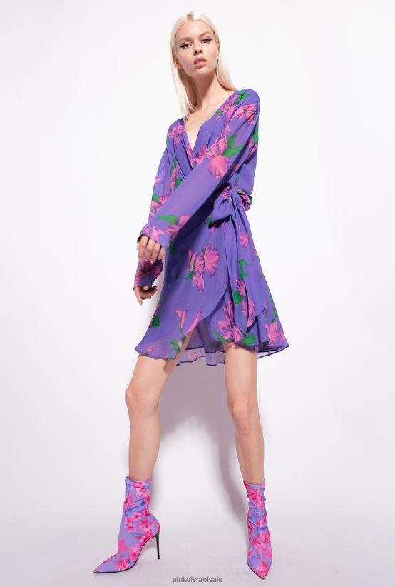 שמלות קצרות | Pinkoסגול/ורוד/ירוק שמלת מעטפת בהדפס איריס 4J84TD153