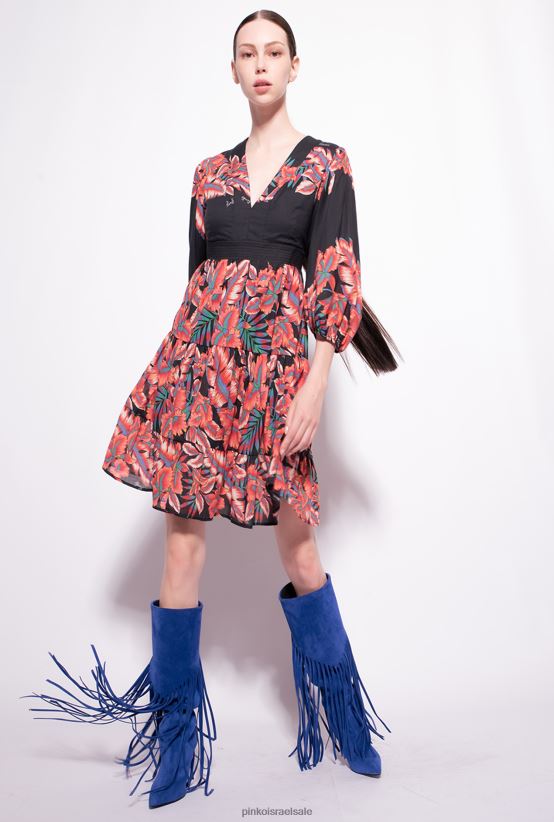 שמלות קצרות | Pinkoרַב. שחור/אדום שמלת כותנה בהדפס טרופי 4J84TD82