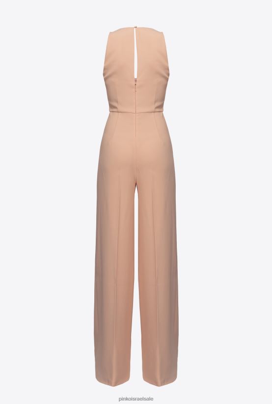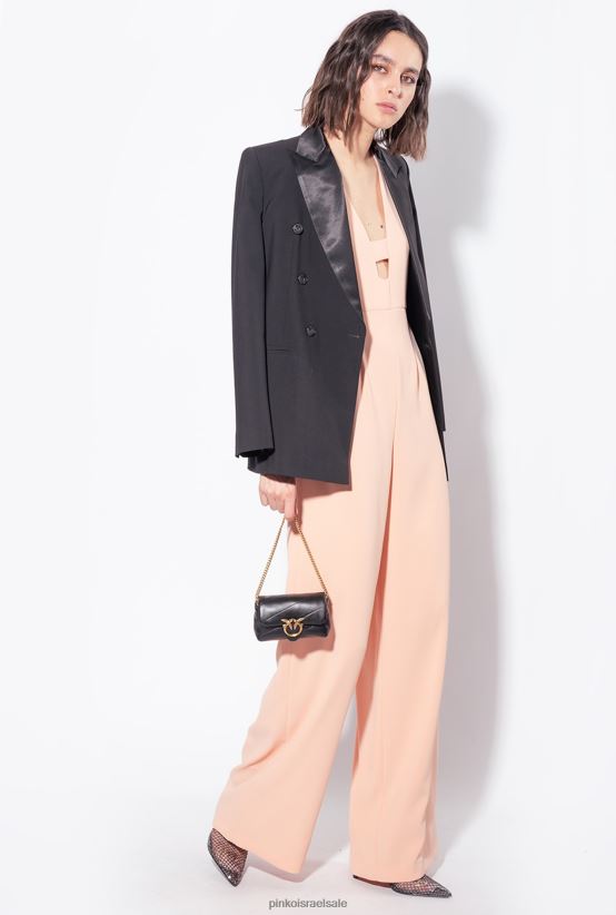 סרבל ללא שרוולים מבד קרפ נמתח עם צווארון V צונח, עם סיכת פרחים נשלפת שניתן למקם מחדש כרצונו. מותניים בגזרה גבוהה ותחתונים רחבים בהתאמה לפאלאצו. הידוק מרכזי קטן מעוטר כפתורים מאחור. - הדגם בגובה 177 ס"מ ולובש מידה 40.