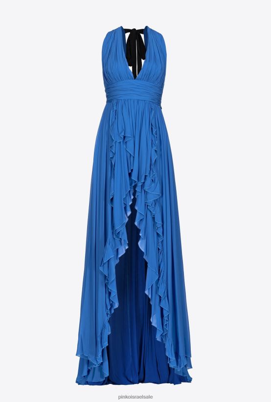 ראשי| הַלבָּשָׁה| שמלות| שמלות ארוכות | Pinkoכְּחוֹל שמלה ארוכה עם סלסולים 4J84TD185