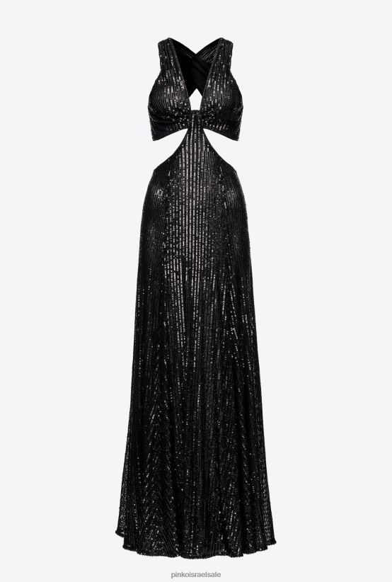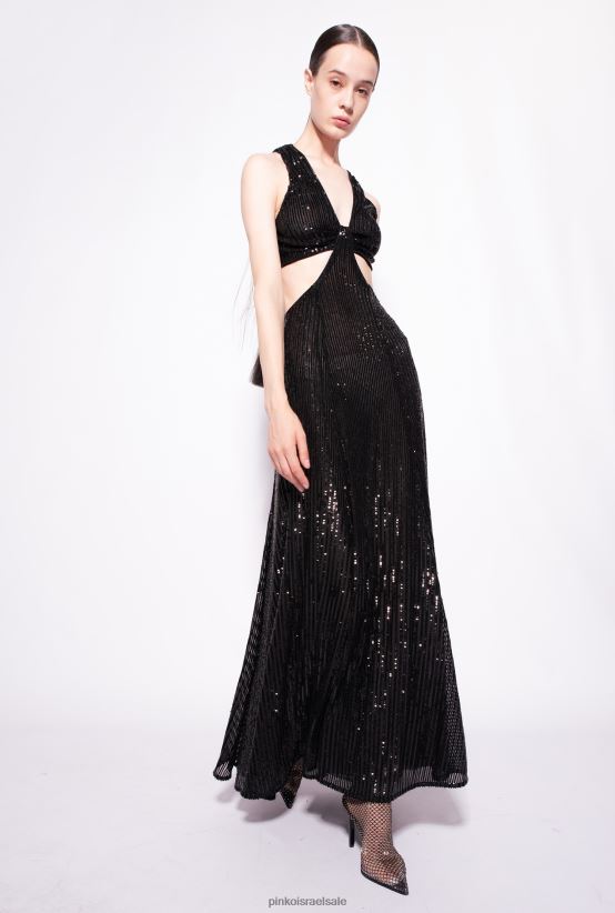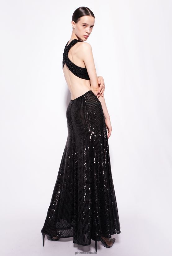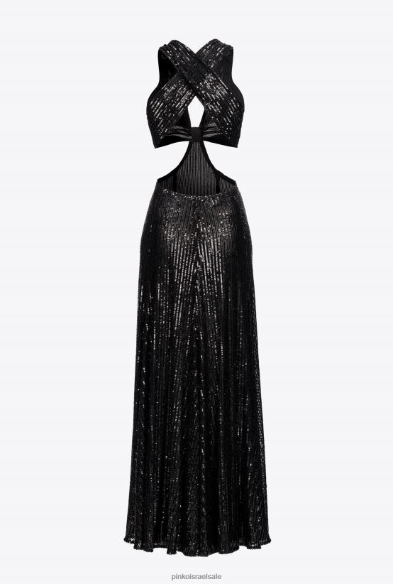 שמלות ארוכות | Pinkoלימוזינה שחורה שמלת פסים ארוכה עם פאייטים בכל הגוף 4J84TD155