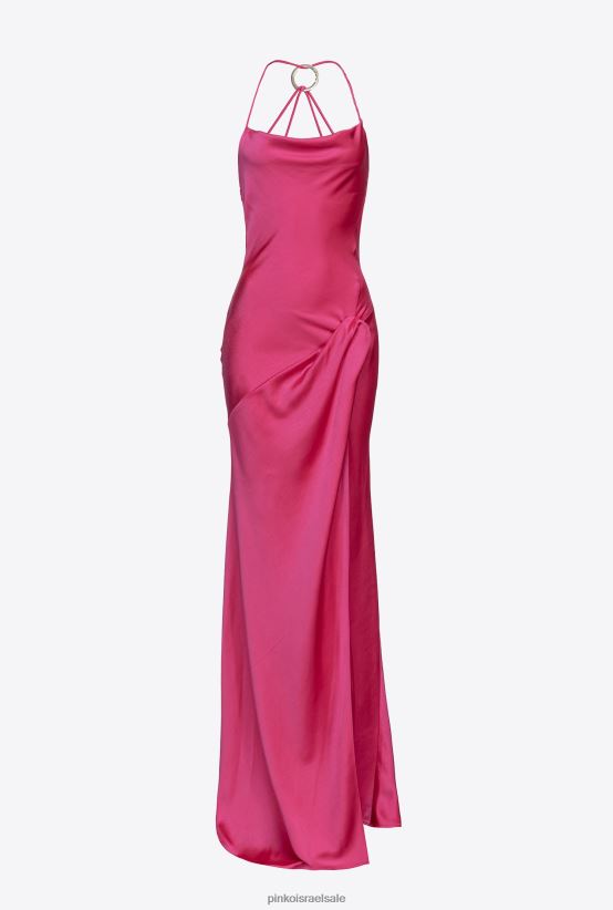 שמלות ארוכות | Pinkoסגול פוקסיה שמלת סאטן ארוכה עם פירוט טבעת 4J84TD47