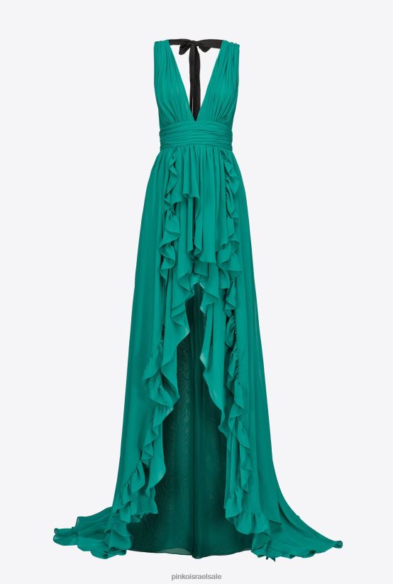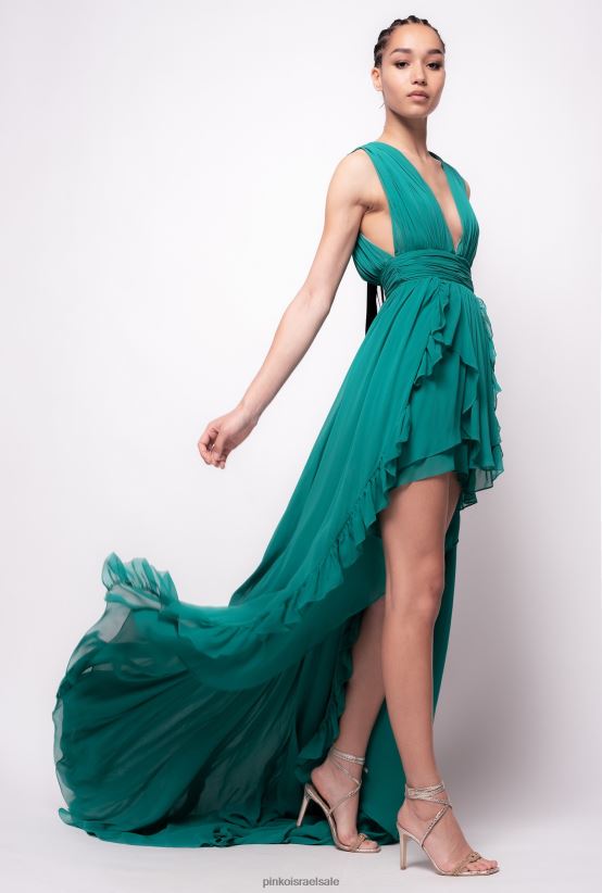 ראשי| הַלבָּשָׁה| שמלות| שמלות ארוכות | Pinkoקרמל גומי שמלה ארוכה עם סלסולים 4J84TD220