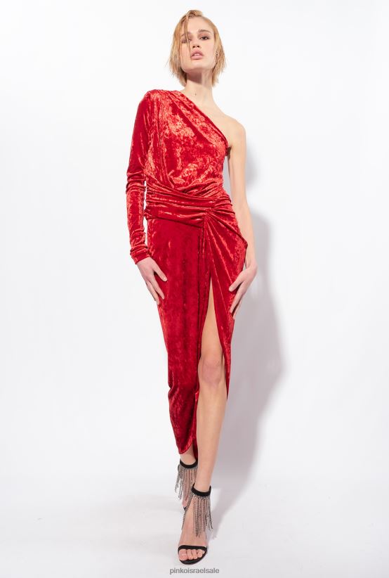 שמלות ארוכות | Pinkoריו אדום שמלת קטיפה מרוסקת עם כתף אחת 4J84TD199