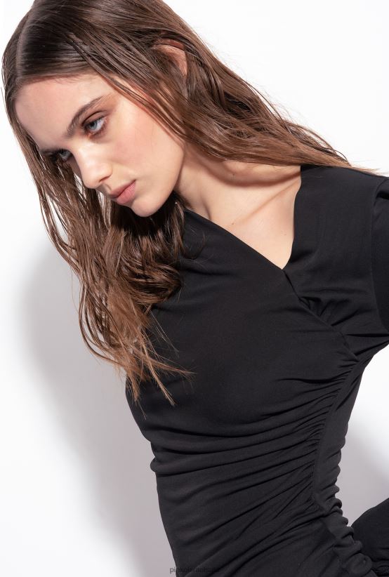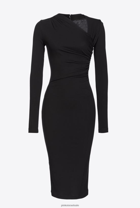 שמלות באורך בינוני | Pinkoלימוזינה שחורה שמלה באורך העגל עם פירוט איסוף צד 4J84TD192