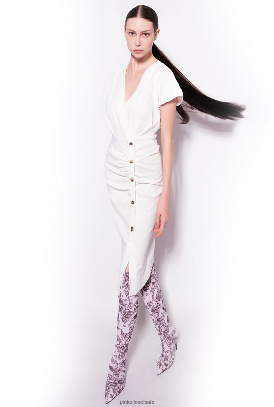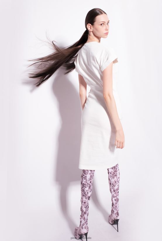 שמלות באורך בינוני | Pinkoענן לבן שמלת פשתן מכופתרת 4J84TD87