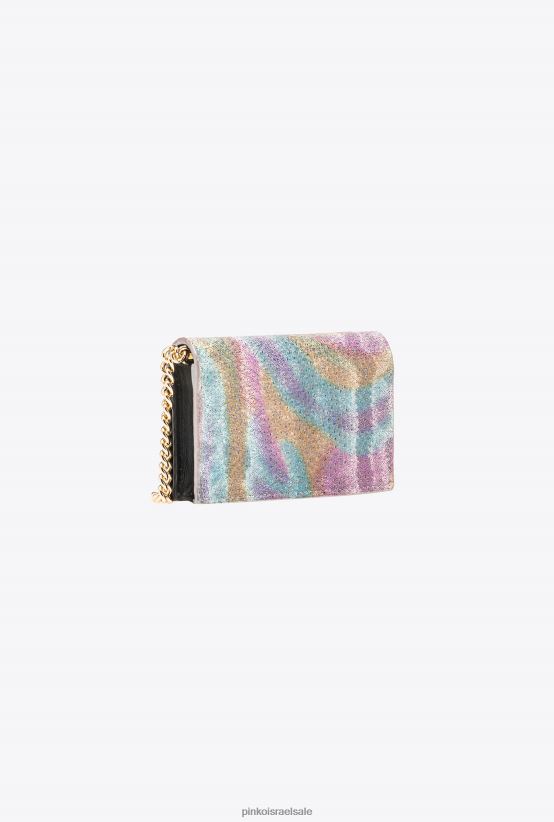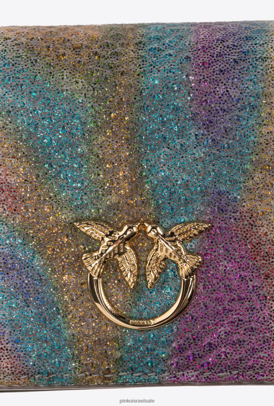 מחזיק כרטיס אשראי בעור קרונג צבעוני. העור האקזוטי הזה שטופל באיטליה מתהדר בדפוס שמזכיר קנה מידה פיתון. הגוון הסופי תלוי בשלב הריסוס השני, שהשפעות הצבע המדהימות שלו הופכות כל תיק ותיק לייחודי. הדש הקדמי מותאם אישית עם לוח מתכת בחיתוך יהלום של ציפורי אהבה. רצועת כתף עם שרשרת דקה נשלפת. האביזר הוא חלק מקולקציית הקפסולה המיוחדת במהדורה מוגבלת הכוללת דגמים בלעדיים של Pinko Galleria במהדורה מוגבלת.